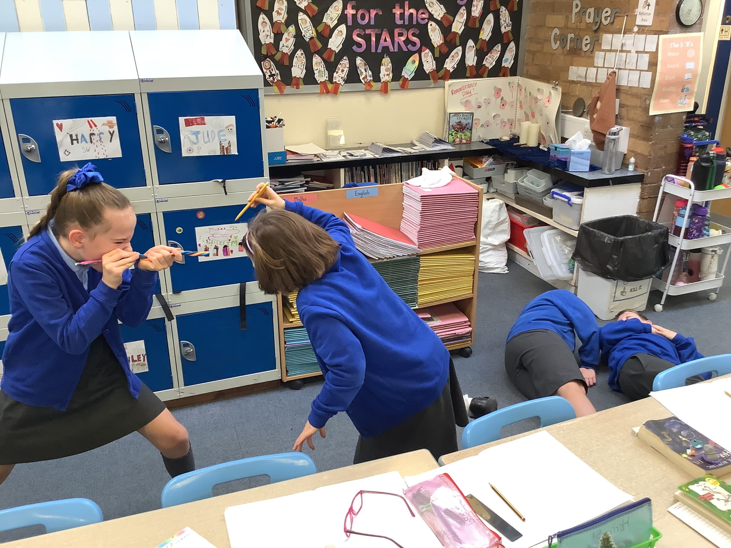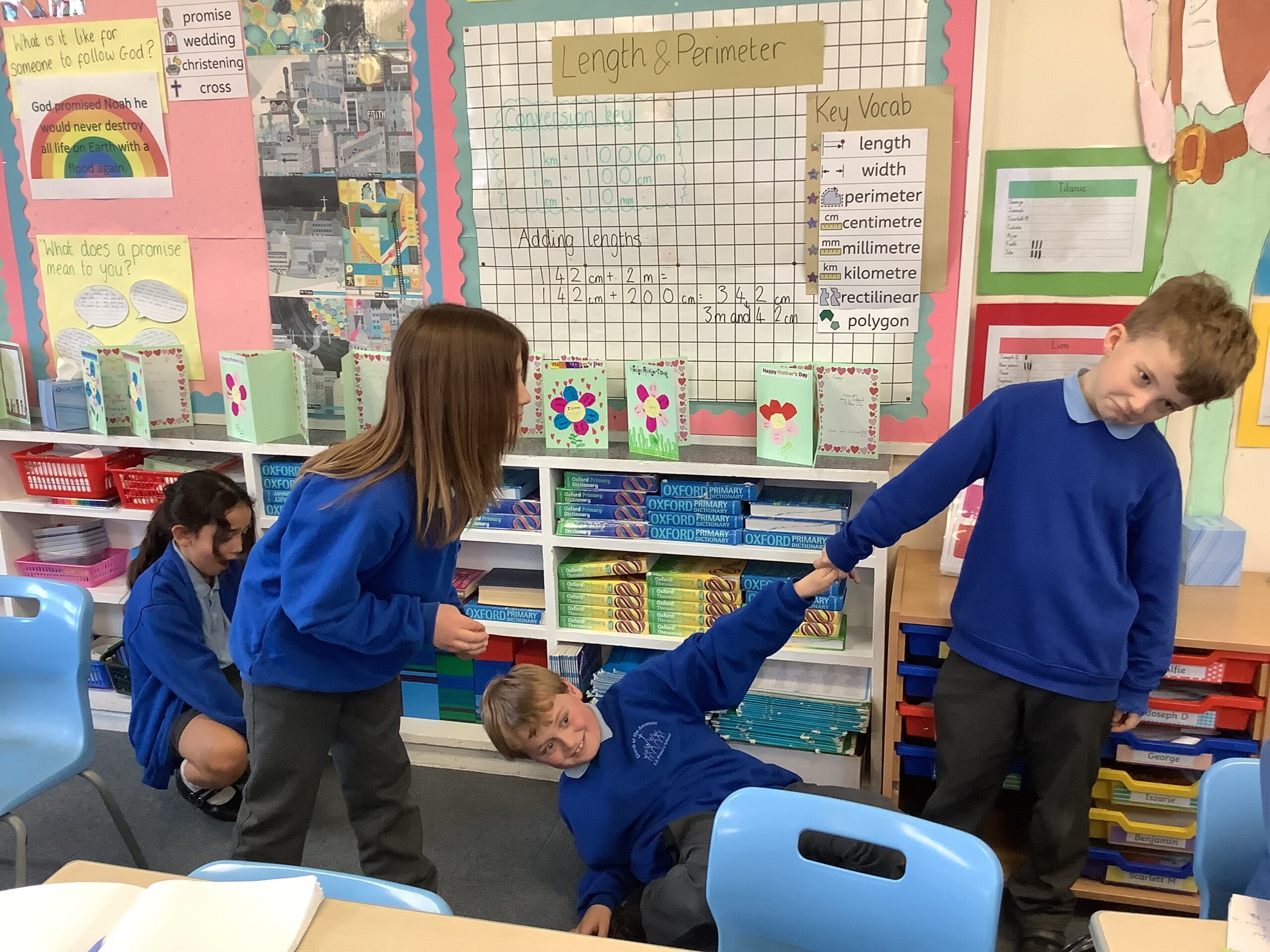 On Wednesday in 4C, we had an exciting English lesson where we got in to groups to recreate different parts of ‘Stone Age Boy’ using freeze frames. We are preparing to write a narrative and this helped us to explore character’s feelings and responses to the different things that could occur in our stories. Here are some of our fabulous freeze frames: