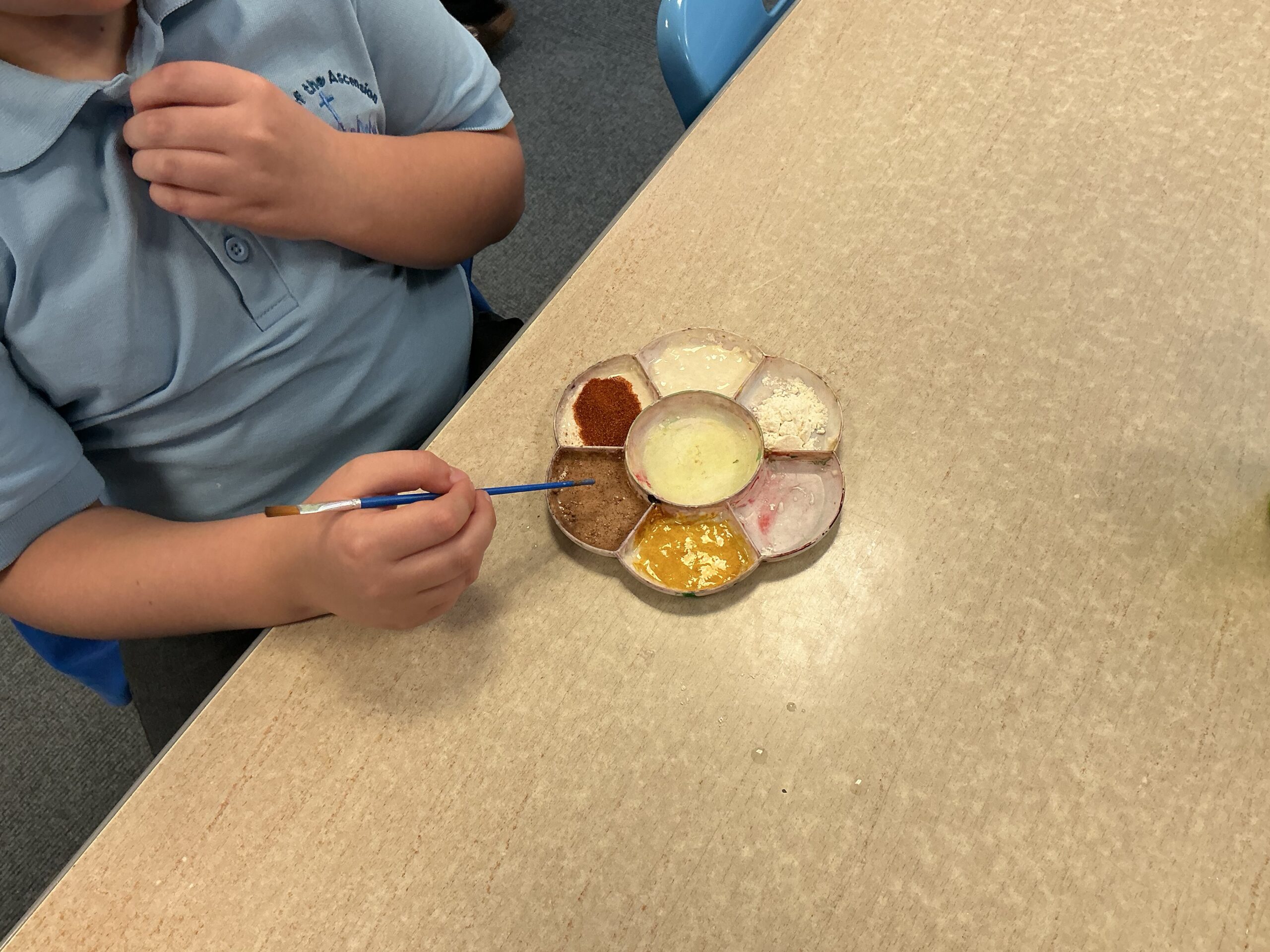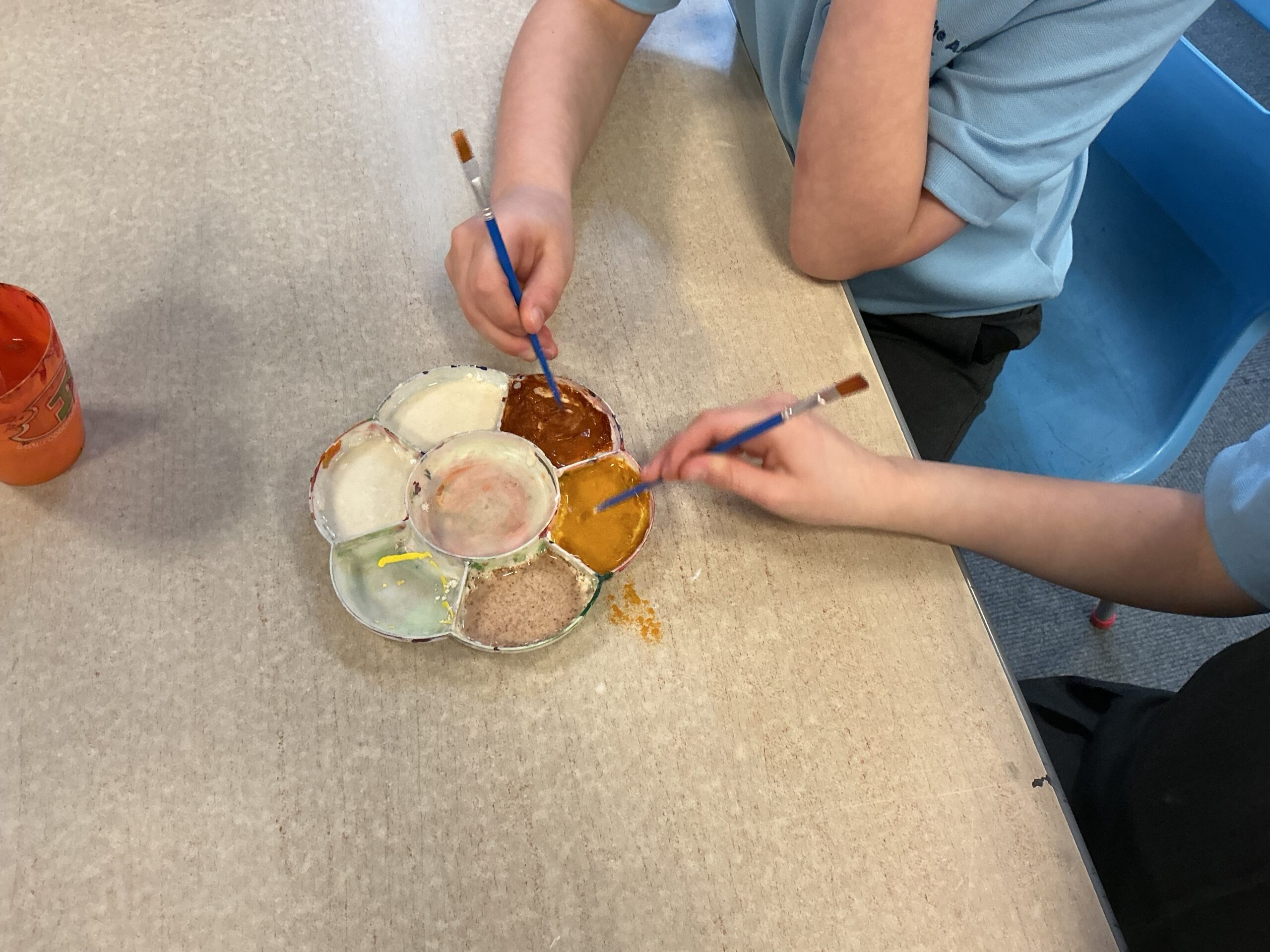 Today in 4C, we had a great afternoon making paints using natural ingredients like they did in the Stone Age.