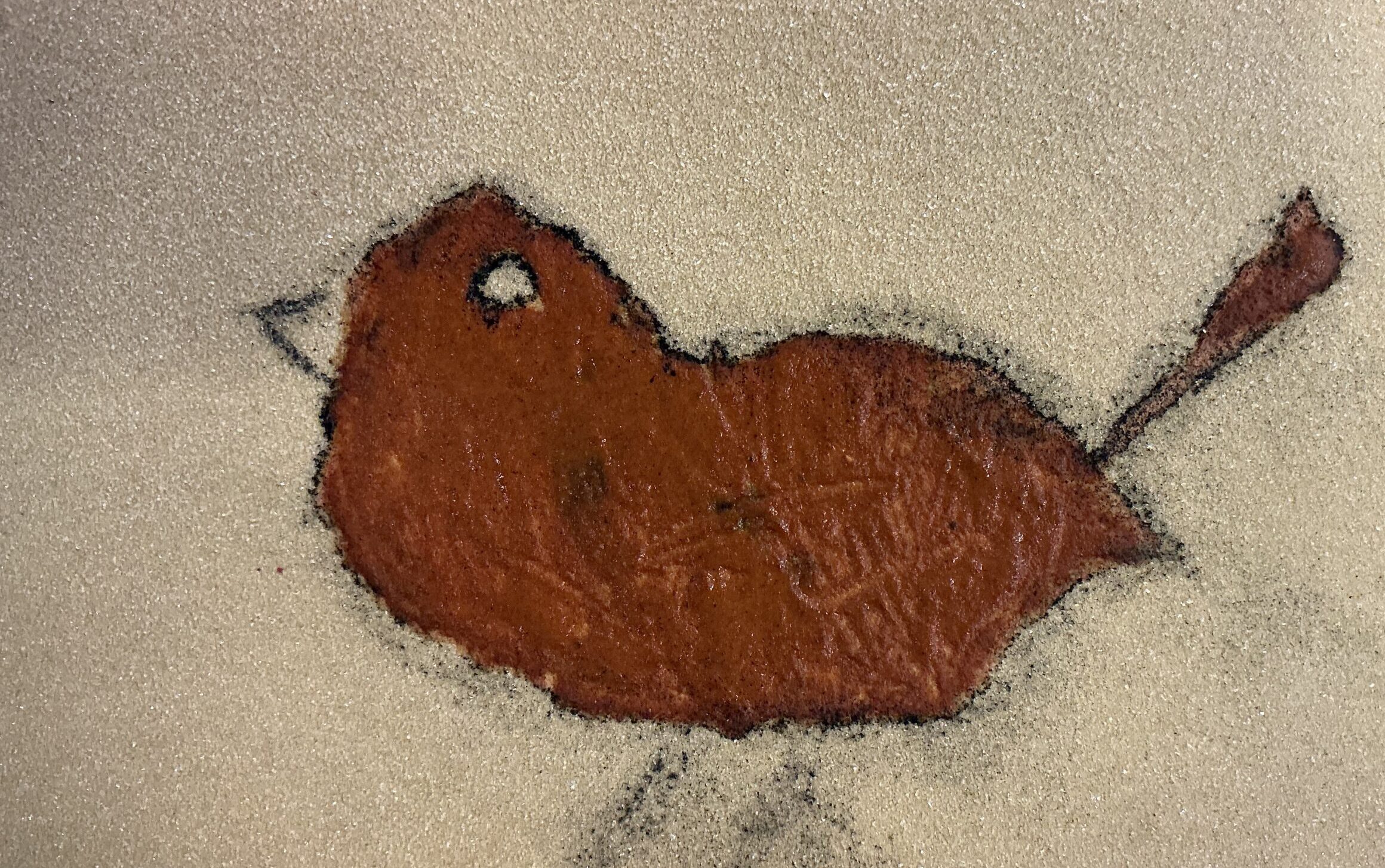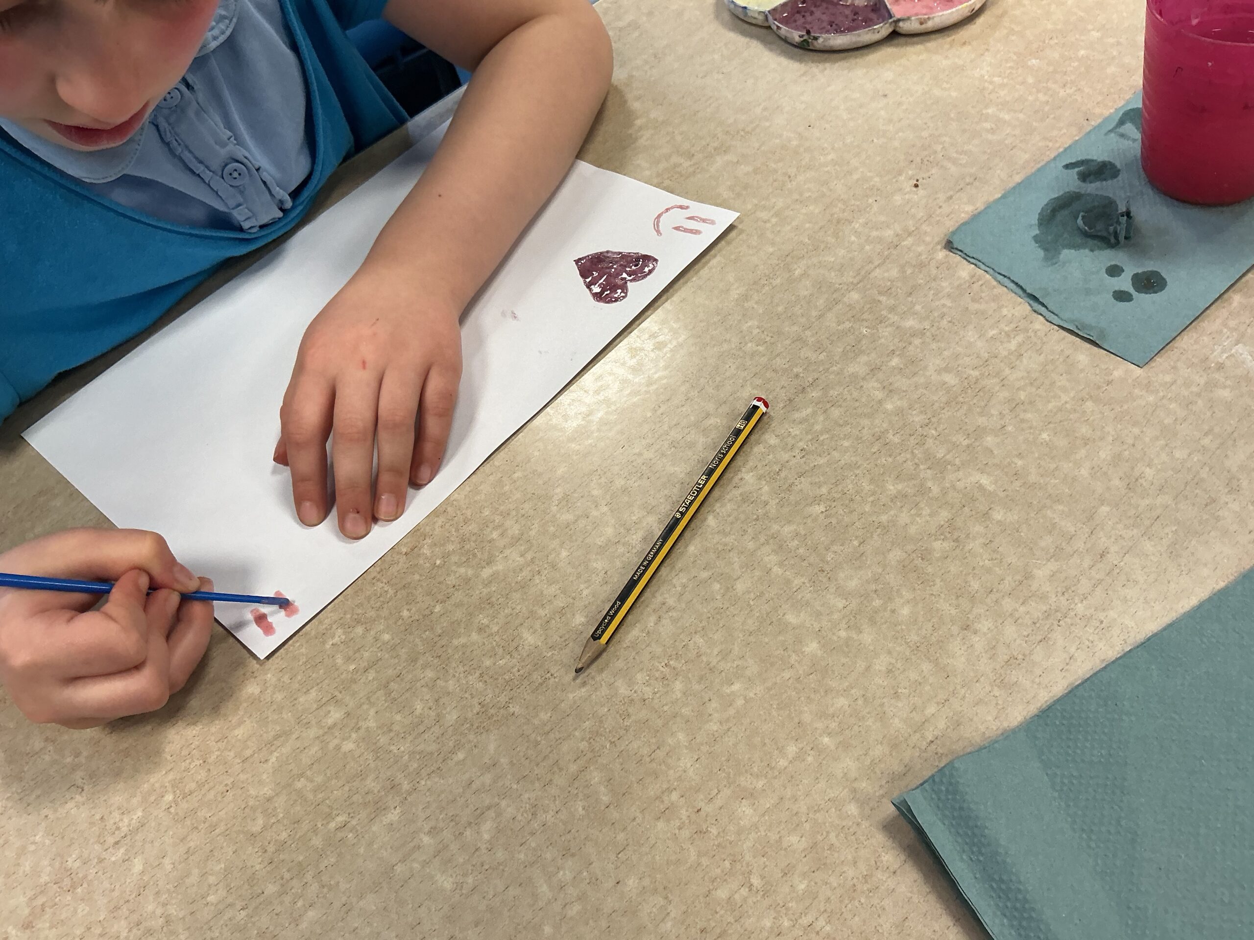 Once we had made our paints, we had a go at mark making using the back of the paintbrushes which felt like using sticks which is what they may have used in the Stone Age.