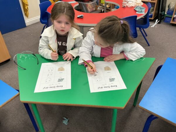 On Wednesday afternoon, we learned about carnivores, herbivores and omnivores. We tricked our grown ups by taking home a pretend dino poop! We sorted dinosaurs into groups – those that walked on 2 legs and those that walked on 4 legs.