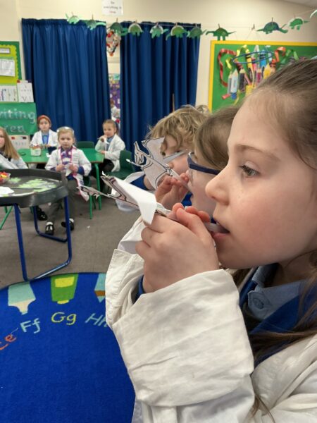 We finished a very busy week off by excavating some dinosaur bones and testing the flight of a ‘Pipette-a-saurus’.