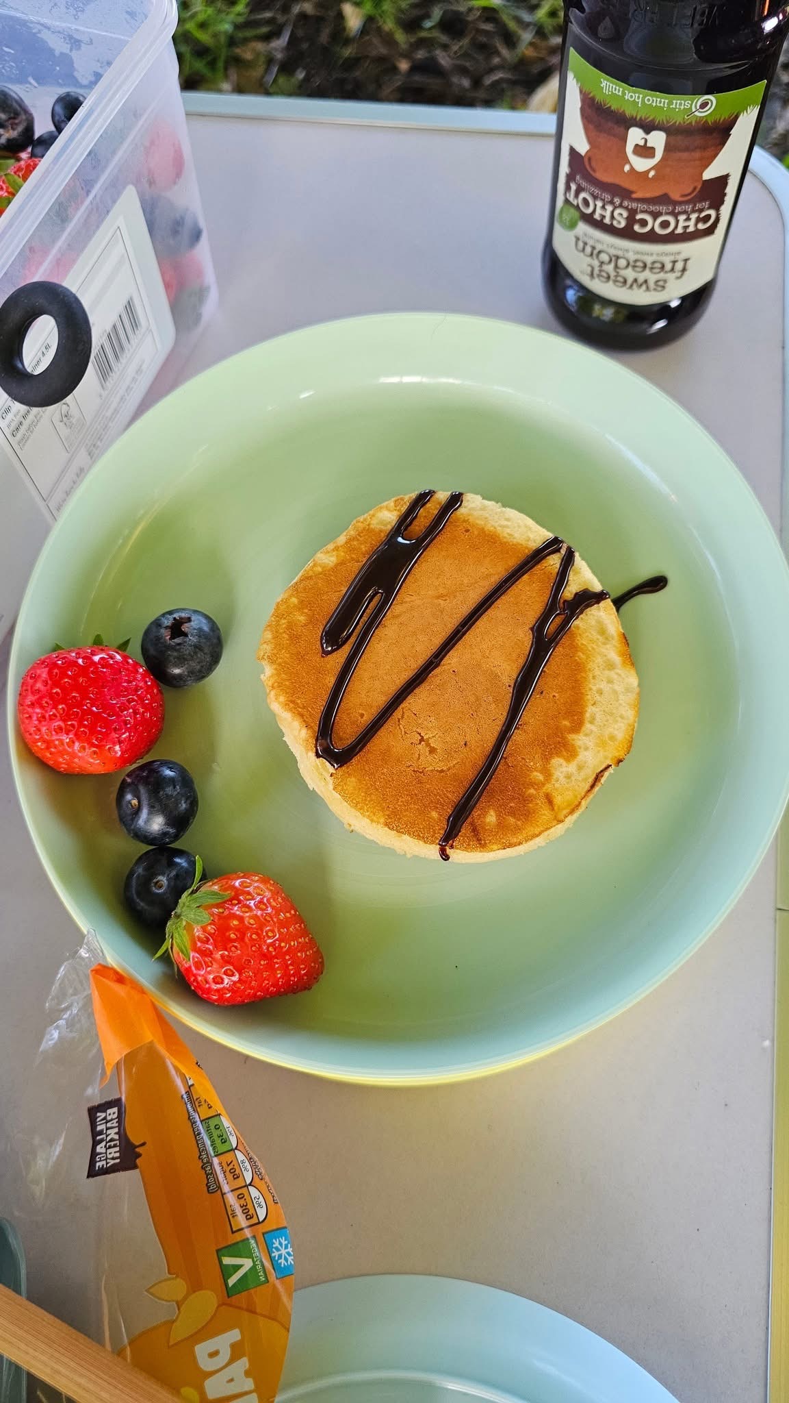 To finish off the session, we enjoyed toasted pancakes with strawberries, blueberries and a drizzle of chocolate sauce — the perfect treat after a busy day outdoors.