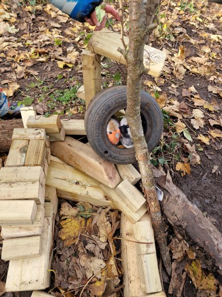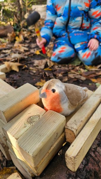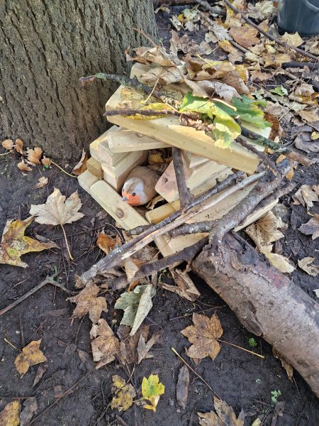 A very chilly day at Forest School today, but the children kept warm by keeping busy! They worked together on two fun tasks — building shelters for the birds and going on a scavenger hunt to find worms for them.